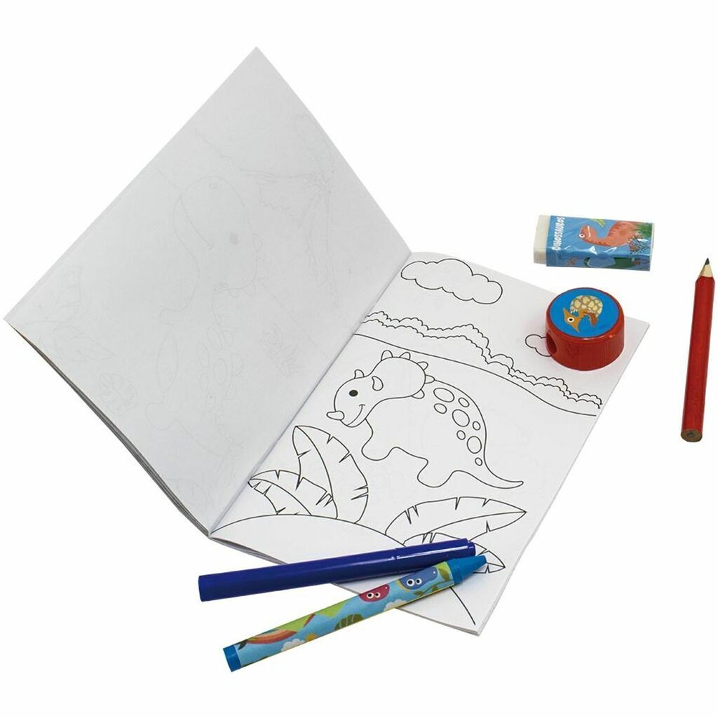 Box com livro Brochura, acompanha 1 lápis, 4 canetinhas, 16 gizes de cera, 1 borracha e 1 apontador